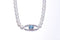 This nice looking pearl necklace is plated in platinum- Made out with fresh water pearls & a blue topaz swarovski crystal